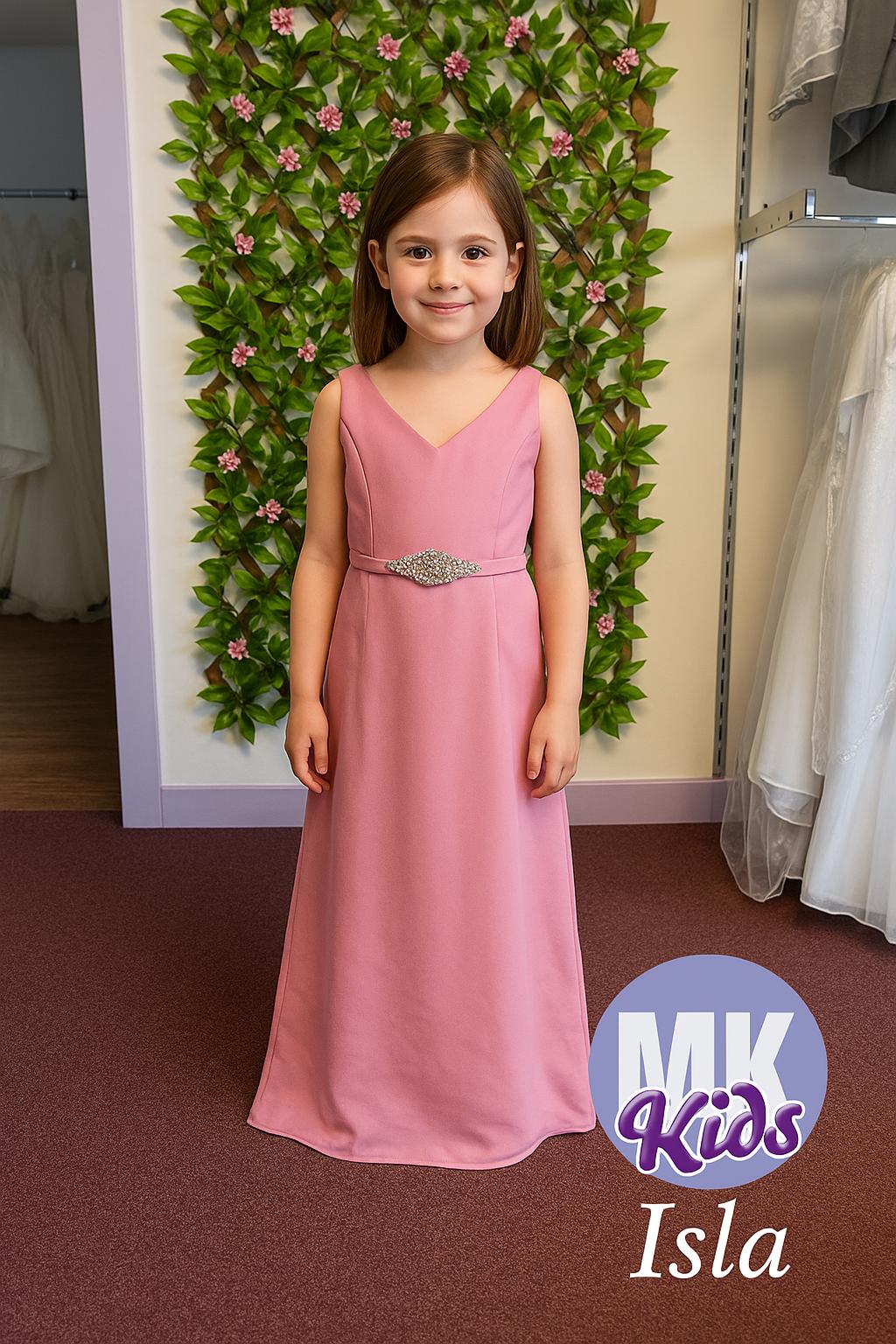 Linzi is an ivory and gold A-line occasion dress from Sevva with a sparkling embellished bodice, illusion neckline and lace-up keyhole back. Its layered tulle skirt and adjustable corset fit make it a gorgeous choice for communions, parties and junior bridesmaids who love a bit of shimmer.